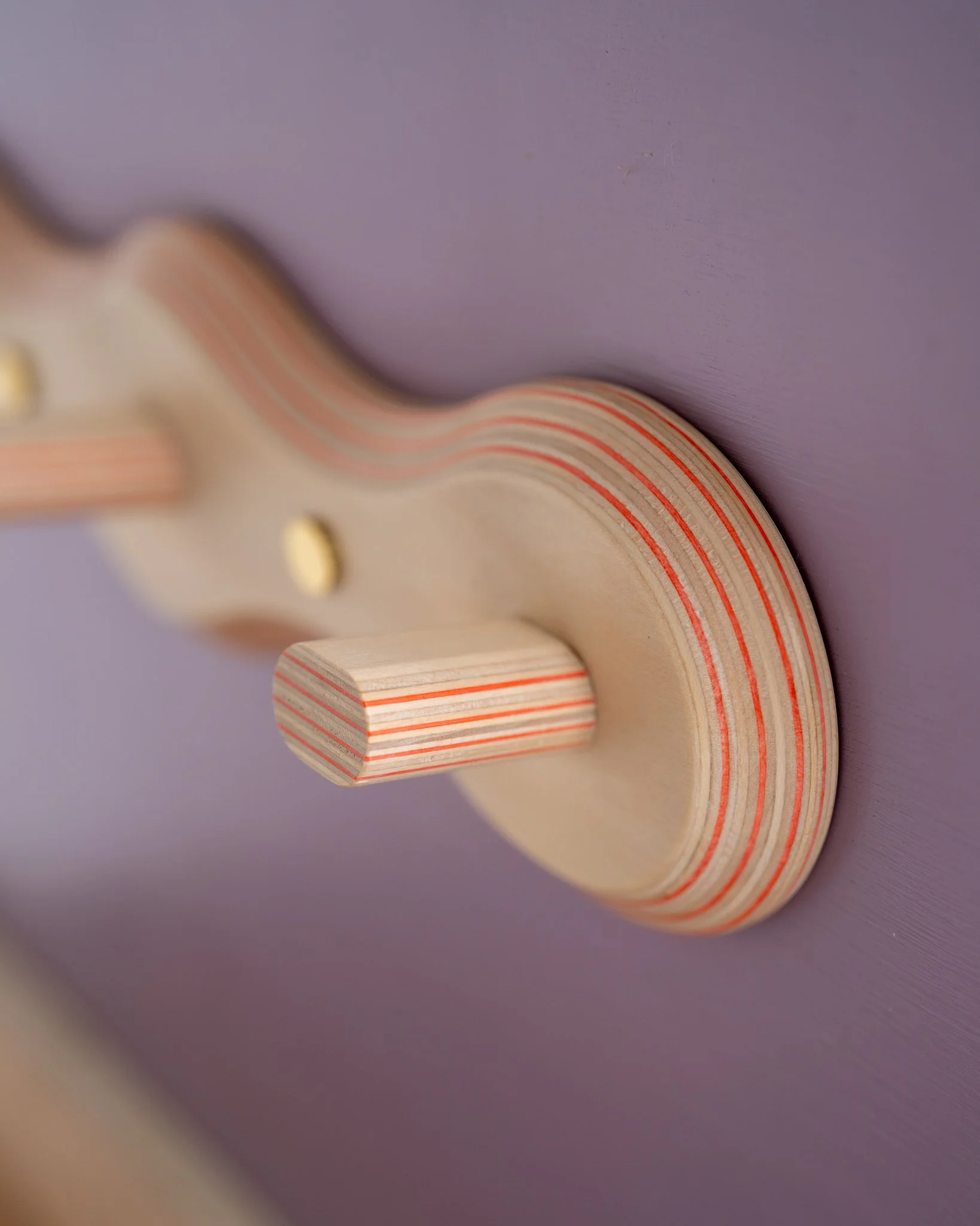 Our curvy wall shelf ‘Criss-Cross’ comes in both a light and dark version, with each design using two beautifully contrasting hardwoods.